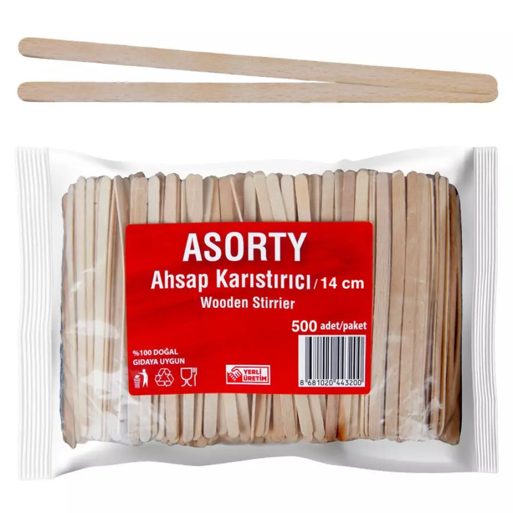 Asorty 2034 Ahşap Karıştırıcı 14 cm 500’lü Poşet, sıcak ve soğuk içeceklerde hijyenik, pratik ve çevre dostu kullanım sunmak üzere tasarlanmıştır. Tek kullanımlık yapısı sayesinde özellikle ofisler, kafeler, restoranlar, oteller, kantinler ve toplu tüketim alanları için ideal bir çözümdür. Doğal ahşaptan üretilmiş olan karıştırıcılar, içeceklerin tadını etkilemez ve plastik karıştırıcılara kıyasla çevreye daha duyarlı bir alternatiftir. 14 cm uzunluğu sayesinde karton bardaklar, cam bardaklar ve kupa tipi bardaklarda rahat kullanım sağlar. 500 adetlik poşet ambalajı, yüksek tüketim gerektiren işletmelerde stok ve maliyet avantajı sunar.