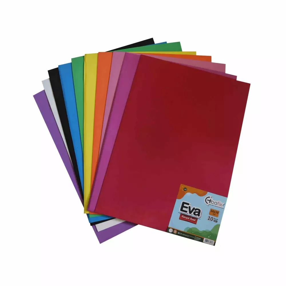Bafix Eva Düz Renk 50x70 Karışık 10 Renk seti, yaratıcılığınızı sınırsız şekilde ifade etmeniz için özel olarak tasarlanmıştır. Yüksek kaliteli EVA sünger malzemeden üretilen bu set, yumuşak dokusu ve esnek yapısıyla kolayca kesilip şekillendirilebilir. Her biri 50x70 cm ölçülerinde olan 10 adet EVA levha, farklı ve canlı renklerden oluşur. Bu sayede okul projelerinden hobi çalışmalarına, dekoratif süslemelerden maket yapımına kadar geniş bir kullanım alanı sunar.