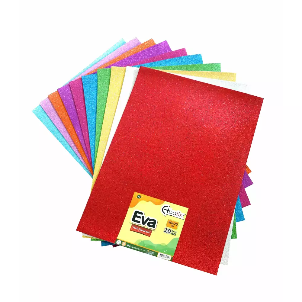 Her biri 50x70 cm ölçülerinde olan 10 farklı simli renk, okul projelerinden hobi çalışmalarına, dekoratif süslemelerden kostüm tasarımlarına kadar geniş bir kullanım alanı sağlar. Esnek ve hafif yapısı, kesme ve şekillendirme işlemlerini zahmetsiz hale getirir. Bafix Eva Simli Yapışkanlı; eğlenceli, yaratıcı ve hızlı sonuçlar elde etmek isteyen öğrenciler için en çok tercih edilen okul eşyaları arasında gelir.