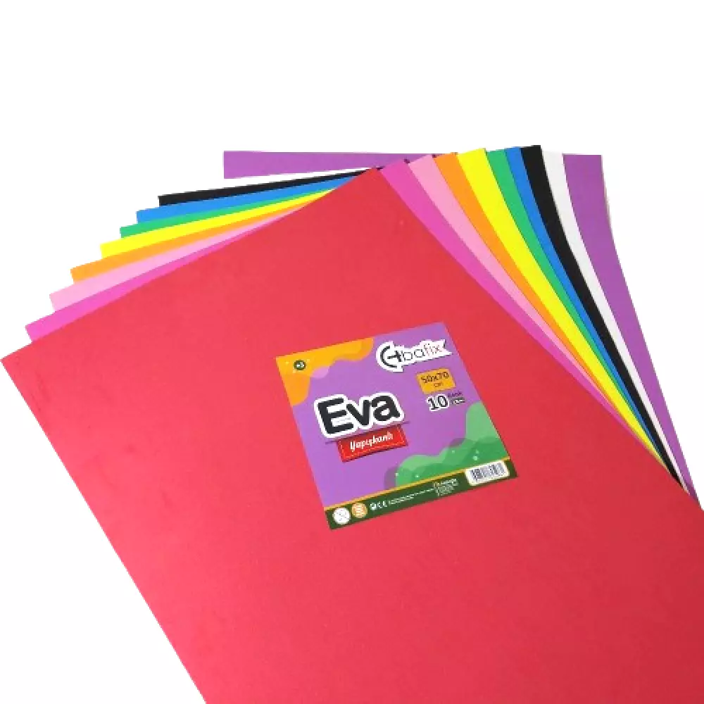 Bafix Eva Yapışkanlı 50x70 - 10 Renk seti, büyük boy projeler için hem pratik hem de estetik bir çözüm sunar. Yüksek kaliteli EVA sünger malzemeden üretilen bu levhalar, arka yüzeyindeki güçlü yapışkan tabanı sayesinde ek yapıştırıcıya gerek kalmadan kolayca uygulanabilir. Her biri 50x70 cm ölçülerinde olan 10 farklı renk, okul projelerinden hobi çalışmalarına, dekoratif panolardan kostüm tasarımlarına kadar geniş bir kullanım alanı sağlar. Esnek ve hafif yapısı sayesinde kolayca kesilir, şekillendirilir ve çeşitli yüzeylerde güvenle kullanılabilir.