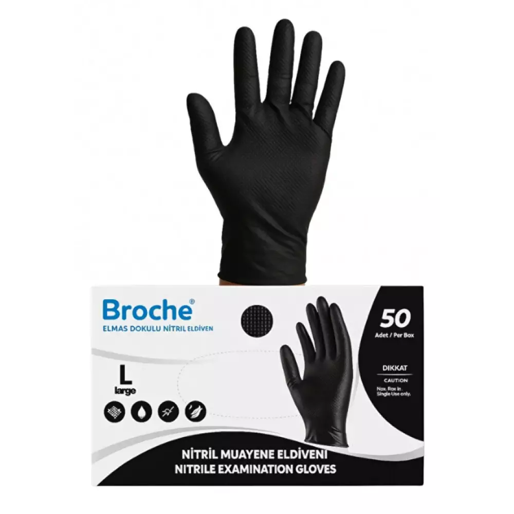 OfisMaster iş güvenliği çözümleri kapsamında sunulan Broche Elmas Dokulu Nitril Eldiven, standart eldivenlerin yetersiz kaldığı zorlu çalışma koşulları için özel olarak geliştirilmiştir. Sıradan nitril eldivenlerden farklı olarak tüm yüzeyine hakim olan "elmas doku" (diamond texture), sıvı ve yağlı ortamlarda bile üstün bir kavrama kabiliyeti sunar. Eldivenin hem avuç içi hem de parmak uçlarında bulunan derin elmas dokulu tırtıklar, yüzey gerilimini minimize eder. Özellikle gres yağı, motor yağı, şanzıman sıvısı veya su ile temas eden yüzeylerde "kaydırmazlık" sağlar. Bu özellik, el aletlerinin kullanımında maksimum kontrol ve iş kazalarına karşı ekstra güvenlik sunar. Standart nitril eldivenlere oranla çok daha kalın bir yapıya (Yüksek Mil kalınlığı) sahip olan Broche, kesici ve delici aletlerle çalışırken üstün mekanik direnç gösterir. Kimyasal çözücülere, dezenfektanlara ve endüstriyel yağlara karşı bariyer görevi görür. Pudrasız yapısı sayesinde uzun süreli kullanımlarda cildi kurutmaz ve alerjik reaksiyon riskini (Tip I Lateks Alerjisi) ortadan kaldırır. Eldivenin iç yapısı, el terlemesini minimize edecek şekilde tasarlanmıştır; el ile kusursuz uyum sağlayarak dokunma hissini (Hassas Montaj İşleri için Kritik) kaybettirmez.