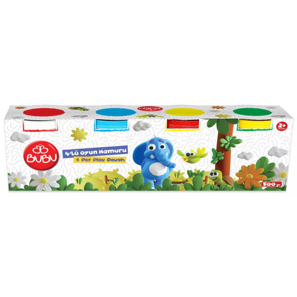 Bu-Bu Oyun Hamuru 4'lü Set 500 gr yumuşaktır ve kolay şekil alır. Bu-Bu Oyun Hamuru elde ve giysilerde iz bırakmaz. Güzel kokulu olarak üretilmiştir. Çocukların yememesi için acı tadındadır. Kutusunda saklandığı sürece kuruma yapmaz.
