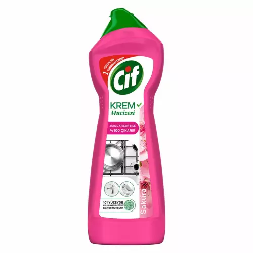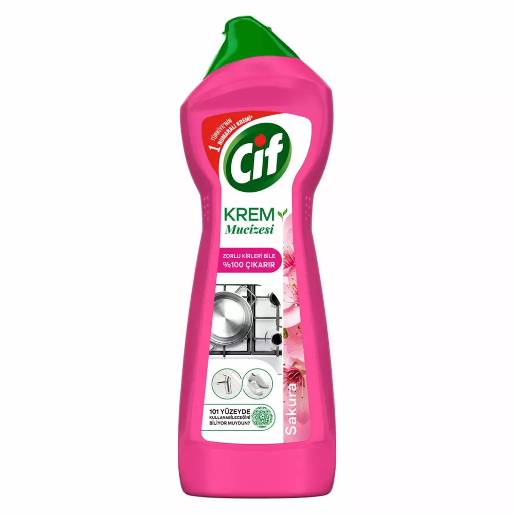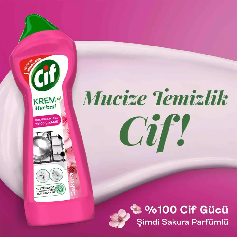 Cif Krem Sakura, pembe renkli ve çiçeksi kokulu bir temizlik ürünüdür. Nemli bir bezle uygulanır, yüzey silinir ve durulanır. Muşamba, vernikli veya hassas yüzeylerde kullanmadan önce görünmeyen bir alanda test edilmesi önerilir. İçeriğinde yüzde beşten az anyonik yüzey aktif madde, yüzde beşten az noniyonik yüzey aktif madde, parfüm, limonen ve linalol bulunmaktadır.