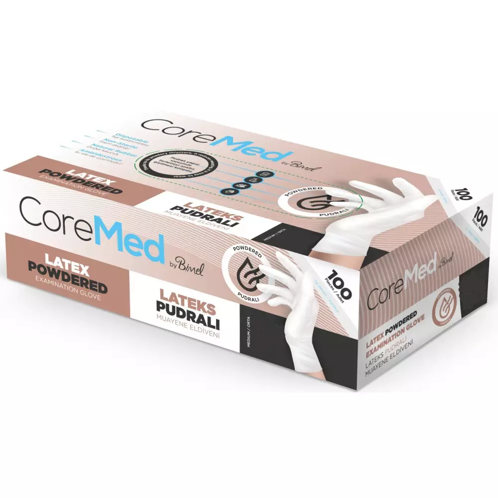 CoreMed Pudralı Lateks Muayene Eldiveni, hızlı giyme ve pratik kullanım gerektiren profesyonel alanlar için geliştirilmiş, tek kullanımlık ve yüksek elastikiyete sahip bir muayene eldivenidir. Doğal lateksten üretilen yapısı sayesinde ele mükemmel uyum sağlar ve üstün dokunma hassasiyeti sunar.