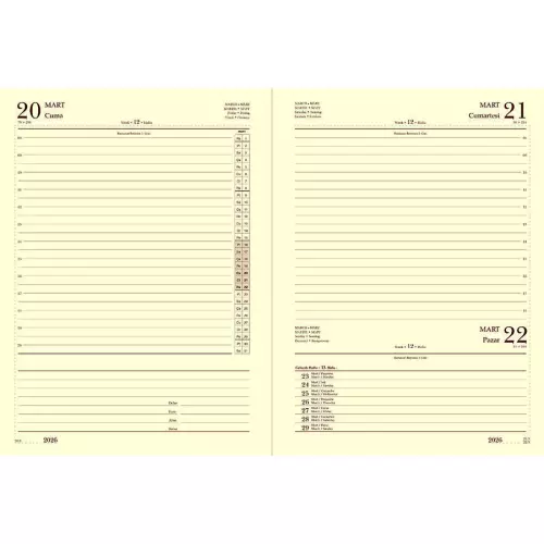 Gıpta 119-ECK Günlük 2026 Ajanda, geniş yazım alanı sunan 20x28 cm büyük boy ölçüsü ile yoğun planlama ve detaylı not alma ihtiyacı olan kullanıcılar için özel olarak tasarlanmıştır. Çizgili iç sayfa düzeni, günlük programlar, toplantı notları ve uzun metinli kayıtlar için düzenli bir kullanım sağlar. Cilt bezi kapak yapısı sayesinde ajanda hem dayanıklı hem de sade, kurumsal bir görünüme sahiptir. Günlük planlama formatı ile her gün için ayrı alan sunarak iş süreçlerinin sistemli şekilde takip edilmesine yardımcı olur. Ofisler, yöneticiler ve kurumsal planlama süreçleri için idealdir.