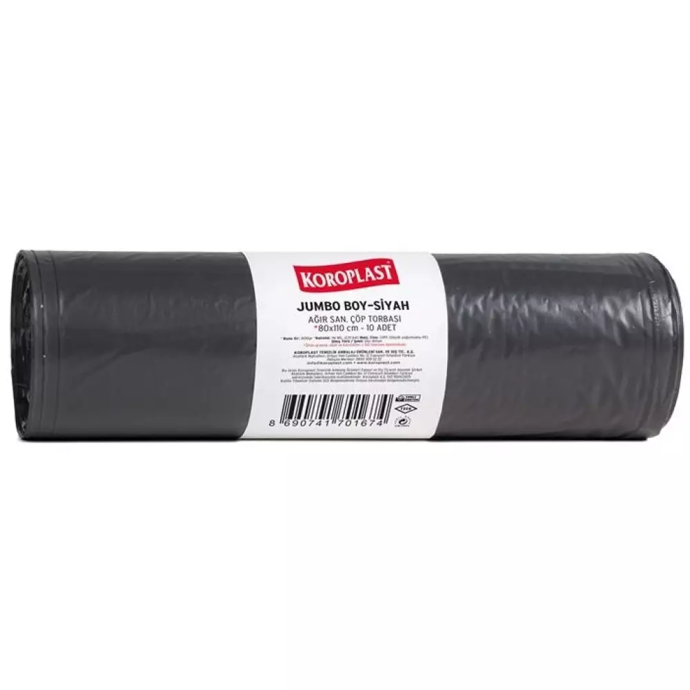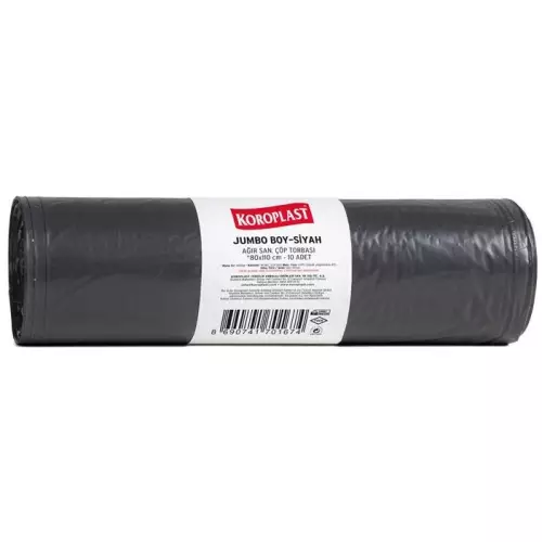 Koroplast Çöp Torbası Ağır Sanayi Jumbo Boy 80x110 - Siyah, 96 mikron kalınlık ve 800 gram net ağırlığıyla en yüksek mukavemet gerektiren endüstriyel alanlar için geliştirilmiştir. Ağır sanayi tipi kullanıma uygun yapısı, delinme, yırtılma ve sızdırmalara karşı maksimum dayanıklılık sağlar. Bu torba, özellikle metal, inşaat, üretim, geri dönüşüm ve fabrika atıkları gibi yüksek yoğunluklu atıkların güvenle taşınması için tasarlanmıştır. Koroplast’ın üstün film teknolojisiyle üretilen bu torbalar, yoğun ağırlıkta bile formunu korur ve hijyen standartlarını üst seviyede tutar. Sanayi alanlarının yanı sıra oteller, restoranlar, hastaneler ve temizlik şirketlerinde de profesyonel bir çözüm sunar.