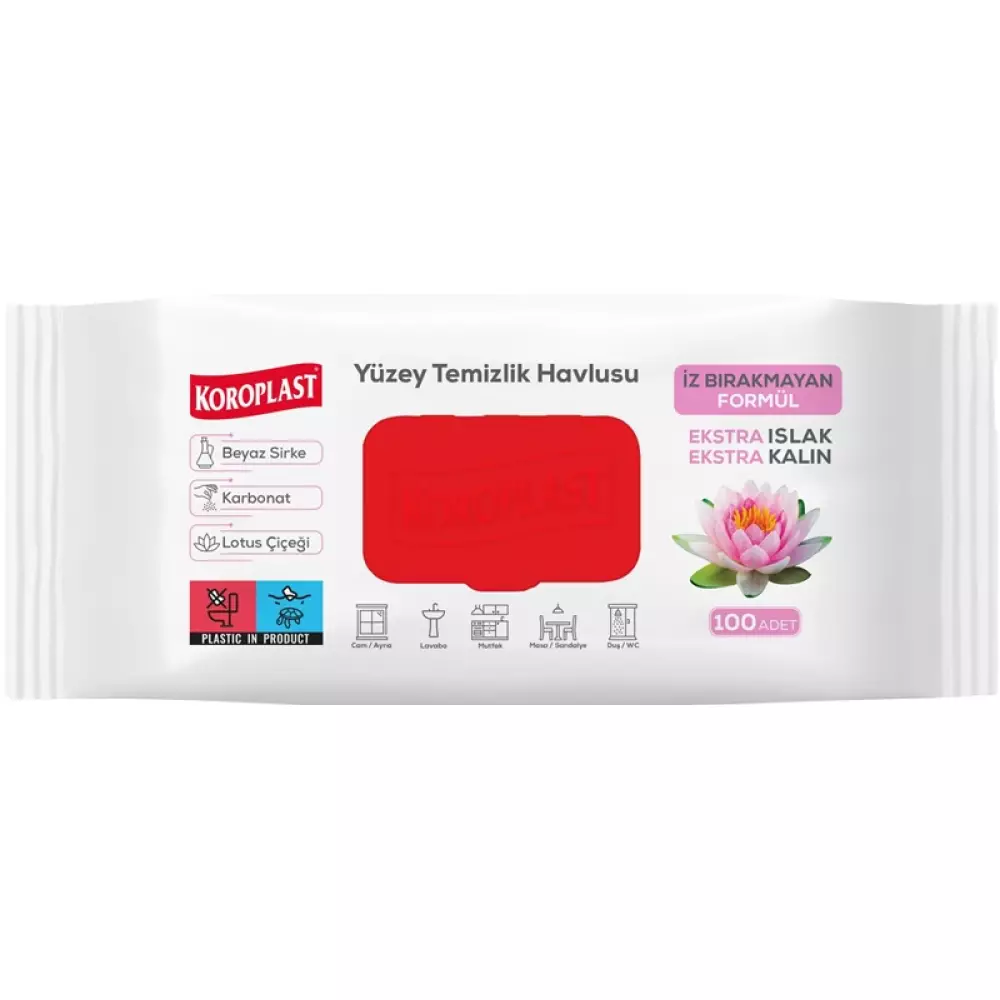 Koroplast Çok Amaçlı Islak Temizlik Havlusu, evde, ofiste ve araçlarda temizlik ihtiyaçlarınızı karşılar. Yüzeyleri kolayca temizlerken hijyen sağlar ve pratik bir çözüm sunar. Ferah kokulu formülüyle temizlik sonrası hoş bir koku bırakır. Yağ, kir ve tozları temizlerken ortamınıza tazelik getirir. 100 yaprak içeren bu büyük paket, uzun süreli kullanım sağlar. Günlük temizlik işlerinizi kolaylaştıran pratik bir çözüm sunar. Güçlü ve dayanıklı yapısıyla kolay yırtılmadan kullanılabilir. Yumuşak dokusu sayesinde yüzeylere zarar vermeden etkili temizlik sağlar.