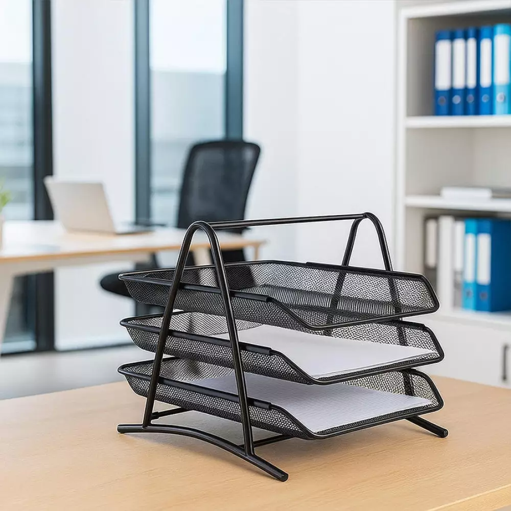 3 Katlı Dikey Optimizasyon: Masa üzerindeki yatay alanı işgal etmek yerine, evraklarınızı dikeyde sınıflandırır. A4 kağıtları, şeffaf dosyalar, kalın telli dosyalar ve kurumsal zarflar için ideal yükseklikte tasarlanmış 3 ayrı bölme sunar.