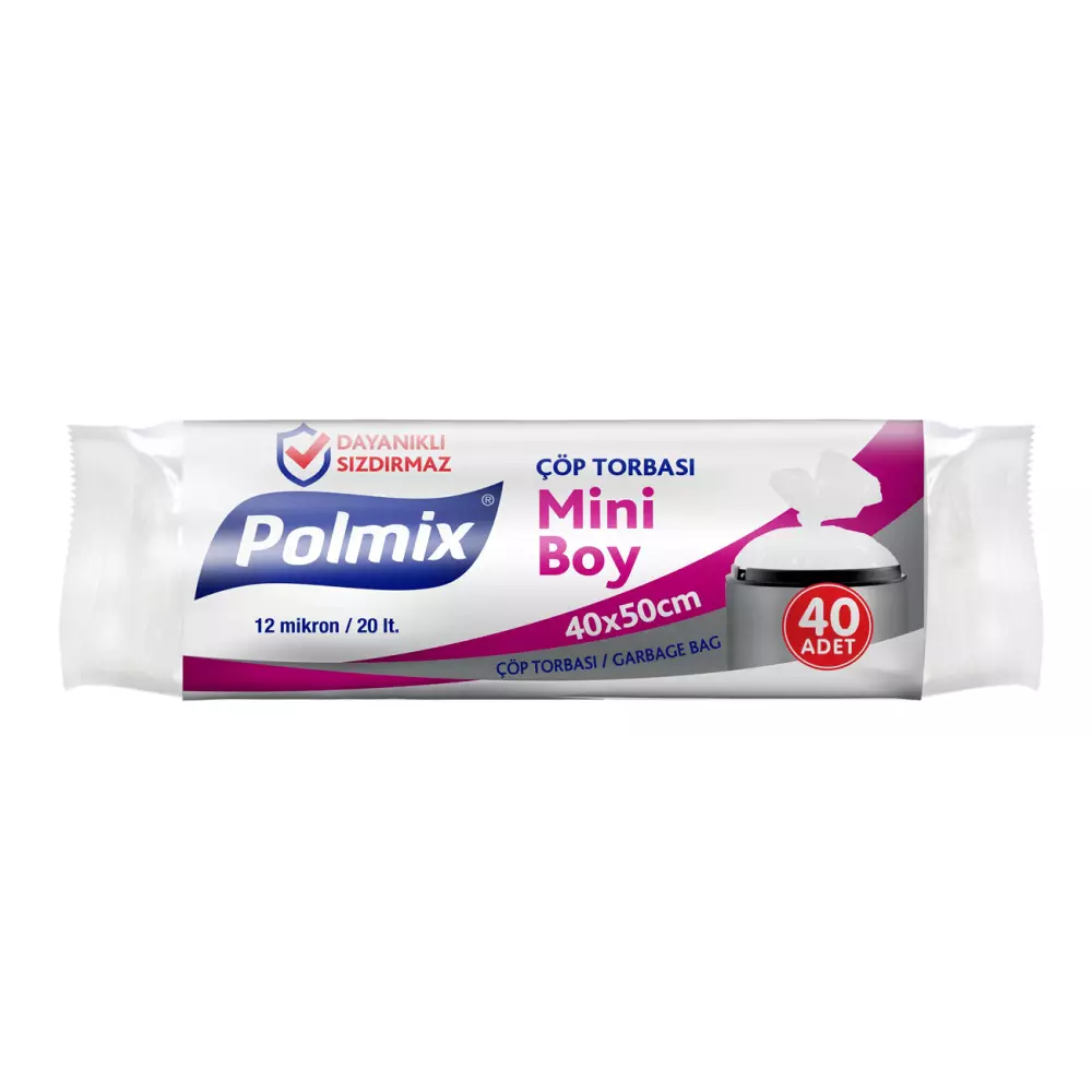 Polmix P101 Mini Boy Çöp Torbası, kompakt boyutları ve dayanıklı yapısıyla ev, ofis, banyo ve mutfak kullanımları için idealdir. 40x50 cm ölçüsüyle küçük çöp kovalarına tam uyum sağlar. 12 mikron kalınlık ve 70 gram ağırlık yapısı sayesinde yırtılmadan, sızdırmadan güvenli kullanım sunar.