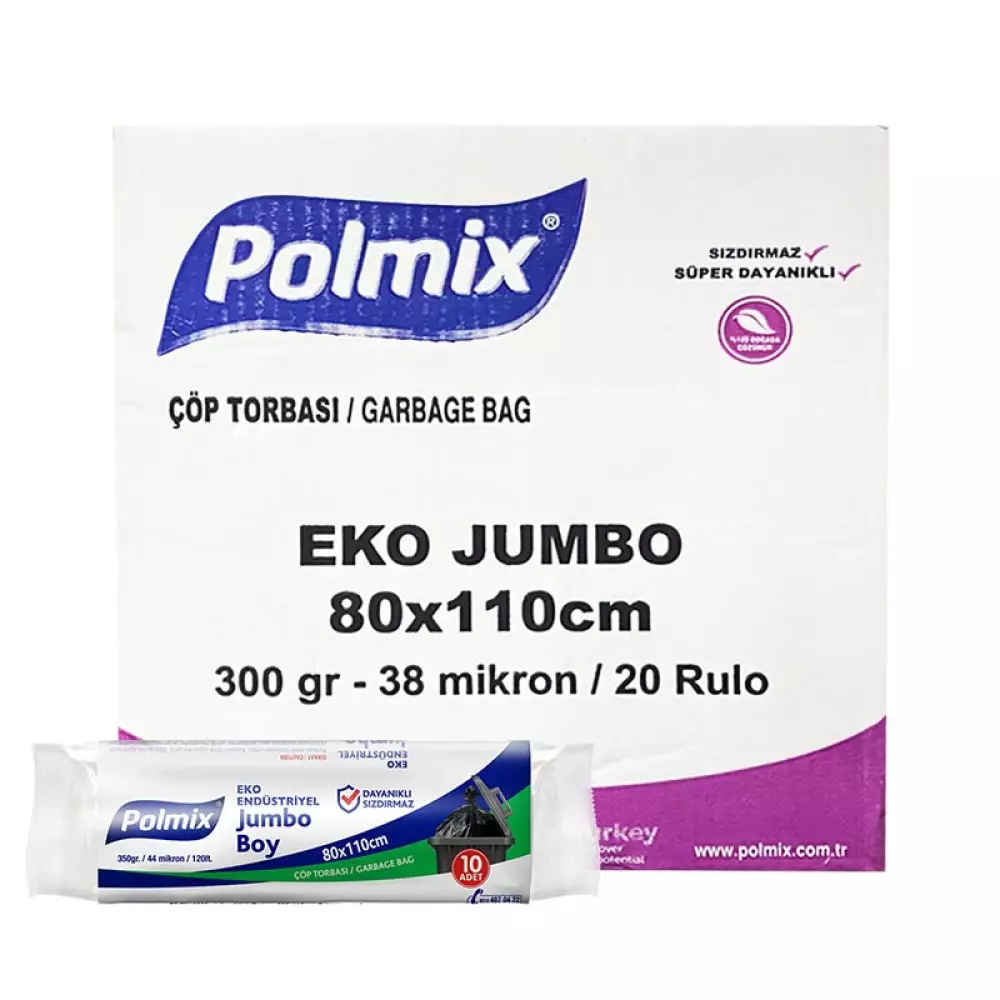 Polmix P303 Çöp Torbası Eko Endüstriyel Jumbo Boy 80x110 Siyah - 10’lu x 20 Rulo Koli