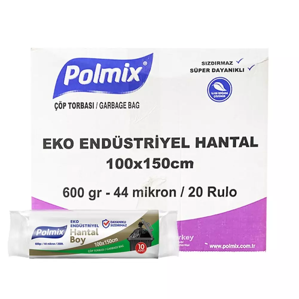 • Polmix P305 Çöp Torbası Eko Endüstriyel Hantal Boy 100x150 Siyah - 10'lu x 20 Rulo Koli