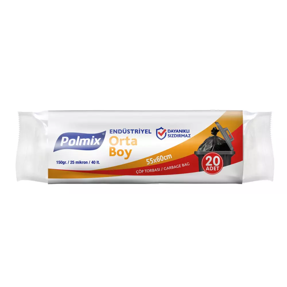 Polmix P401 Çöp Torbası Endüstriyel Orta Boy 55x60 Siyah x 20’li