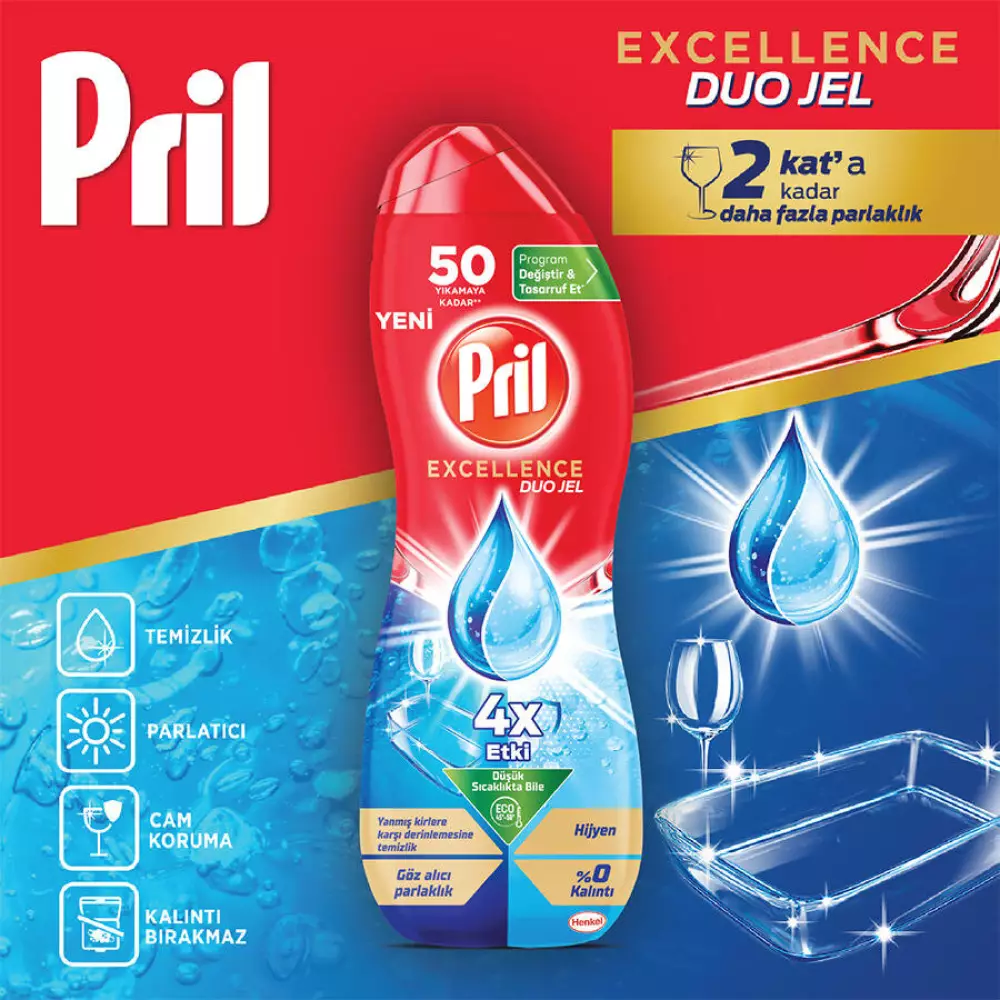 Pril Gold Jel Hijyen Bulaşık Deterjanı, güçlü yağ çözme performansını hijyen odaklı temizlikle birleştiren özel formülü sayesinde mutfaklarda üstün temizlik sağlar. Yoğun jel yapısı, kurumuş ve inatçı yağları hızlıca çözerken tabak, bardak ve mutfak gereçlerinde hijyenik bir temizlik sunar. 900 ml’lik ergonomik ambalajı ile ev, ofis mutfağı ve kurumsal kullanım için ideal bir çözümdür. Etkili formülü sayesinde az miktarla yüksek temizlik performansı sağlar, durulaması kolaydır ve geride kalıntı bırakmaz.