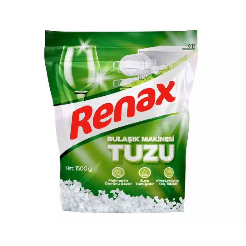 Renax Bulaşık Makinesi Tuzu 1500 gr, sert suyun neden olduğu kireç oluşumunu önlemek ve bulaşık makinelerinin maksimum performansla çalışmasını sağlamak amacıyla geliştirilmiştir. Özel granül yapısı sayesinde makinenin su yumuşatma sistemini destekler, kireçlenmeyi azaltır ve cam ile porselenlerde oluşan matlaşmayı önlemeye yardımcı olur. Düzenli kullanımda bulaşıkların daha parlak çıkmasını sağlar, deterjanın etkinliğini artırır ve bulaşık makinesinin ömrünü uzatır. 1500 gramlık ekonomik ambalajı ile evsel kullanımın yanı sıra ofisler ve profesyonel mutfaklar için de ideal bir bakım ürünüdür.