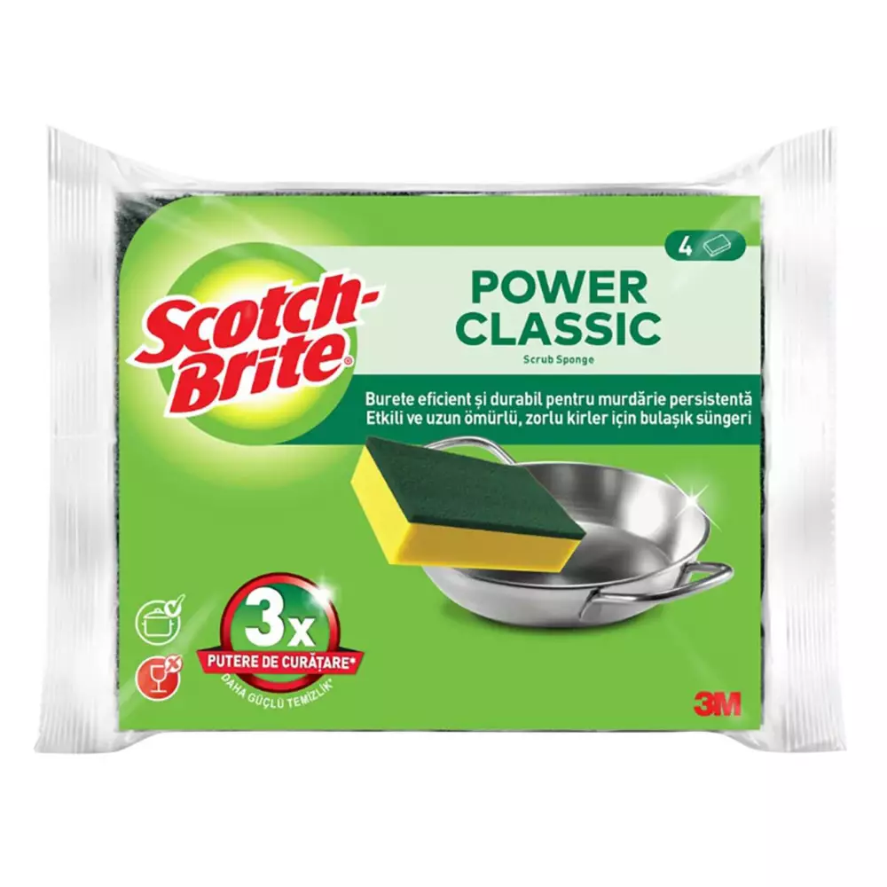 Scotch Brite Yeşil Klasik Sünger, günlük mutfak temizliği için geliştirilmiş yüksek performanslı bir temizlik süngeridir. Çift katmanlı yapısı sayesinde bir yüzeyiyle zorlu kir ve yağları sökerken, sünger yüzeyiyle hassas yüzeylerde etkili temizlik sağlar. Yeşil lifli yüzeyi, tencere, tava ve ocak gibi zorlu yüzeylerde maksimum temizlik gücü sunarken; alt katmandaki sünger yapı bol köpük oluşturarak deterjanın verimli kullanılmasını sağlar. 4’lü ekonomik paketi ile evler, ofis mutfakları ve işletmeler için ideal bir çözümdür. Scotch Brite kalitesiyle uzun ömürlü kullanım sunar, kolay dağılmaz ve formunu korur.