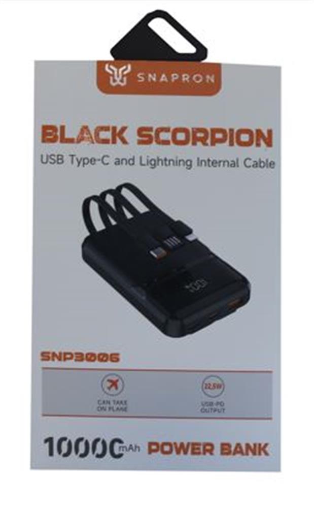 SnapMax SNP-3006 10.000 mah Hızlı Şarj LED Göstergeli 3in1 Dahili Kablolu Powerbank
