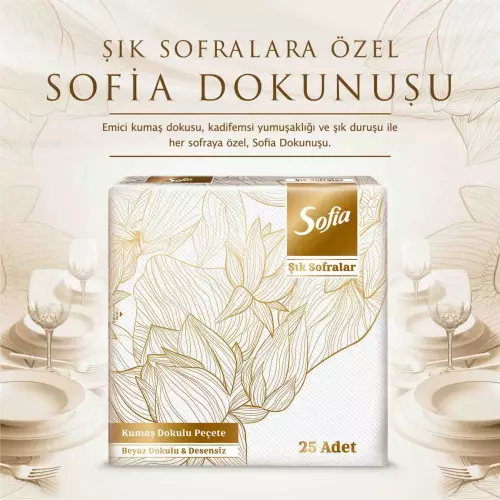 Sofia Kumaş Dokulu Peçete 30’lu, özel kumaş hissi veren dokusu ve zarif duruşuyla sofralarda fark yaratan premium bir peçete serisidir. Kadifemsi yumuşaklığı sayesinde konforlu bir kullanım sunarken, kalın ve dayanıklı yapısı ile özellikle yağlı yiyeceklerde yüksek emicilik sağlar. Dekoratif katlamalara uygun ölçüsü ve formunu koruyan yapısı sayesinde şık sofralar, davet masaları, ofis ikram alanları ve özel organizasyonlar için ideal bir tercihtir. Islak kullanımda kolay parçalanmayan dokusu, hem estetik hem de işlevselliği bir arada sunar.