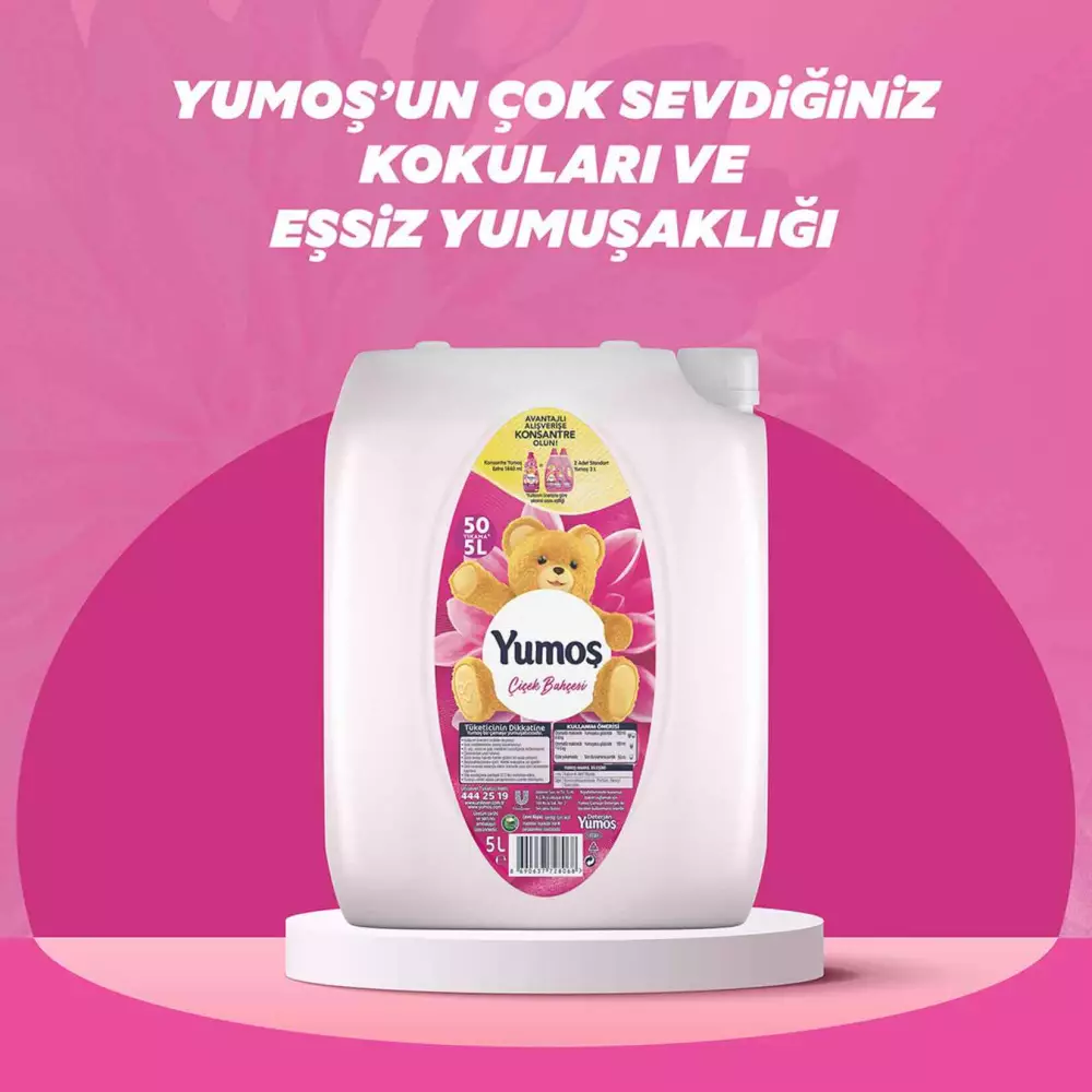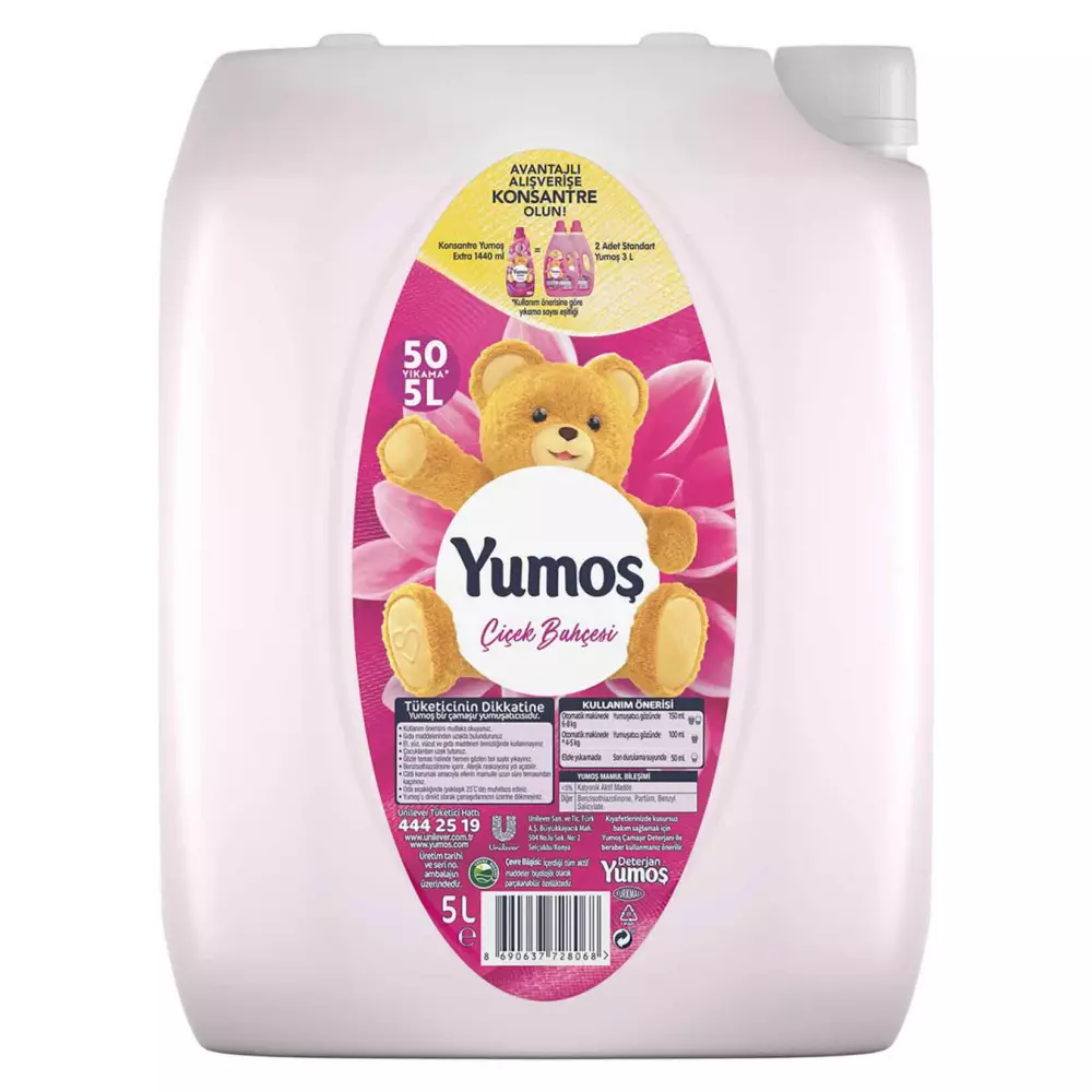 Yumoş Çamaşır Yumuşatıcısı Çiçek Bahçesi 5 Litre, çamaşırlara uzun süre kalıcı ferahlık kazandırmak ve kumaşlarda maksimum yumuşaklık sağlamak amacıyla geliştirilmiş profesyonel kullanıma uygun bir yumuşatıcıdır. Özenle seçilmiş çiçek notalarından oluşan Çiçek Bahçesi kokusu, yıkama sonrası çamaşırlarda taze ve temiz bir his bırakır. Özel formülü sayesinde kumaş liflerinin sertleşmesini önler, çamaşırların daha az kırışmasına yardımcı olur ve ütüleme sürecini kolaylaştırır. Aynı zamanda statik elektriklenmeyi azaltarak kıyafetlerin daha rahat kullanılmasını sağlar.